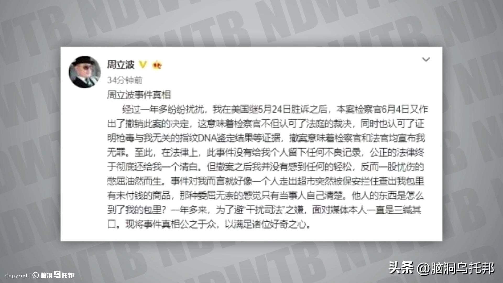 而他也真的说到做到。6月28日,回国后的周立波写下了数千字的声讨微博——《周立波事件真相》。