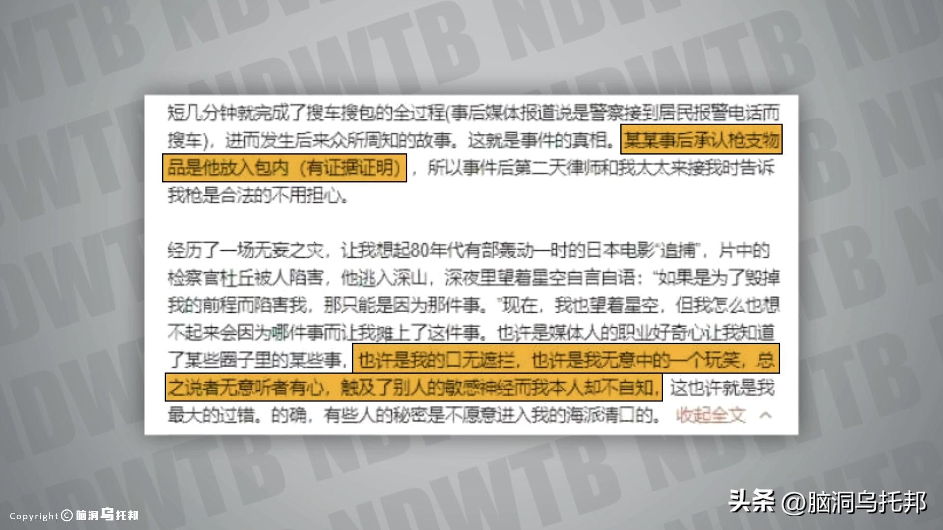 结果是周立波先被保释了出去,随后通过其国内律师屠磊发言称「车上发现了枪支和违禁品,且同行还有其他人」,似乎是在暗示问题出在仍没被保释的唐爽身上。