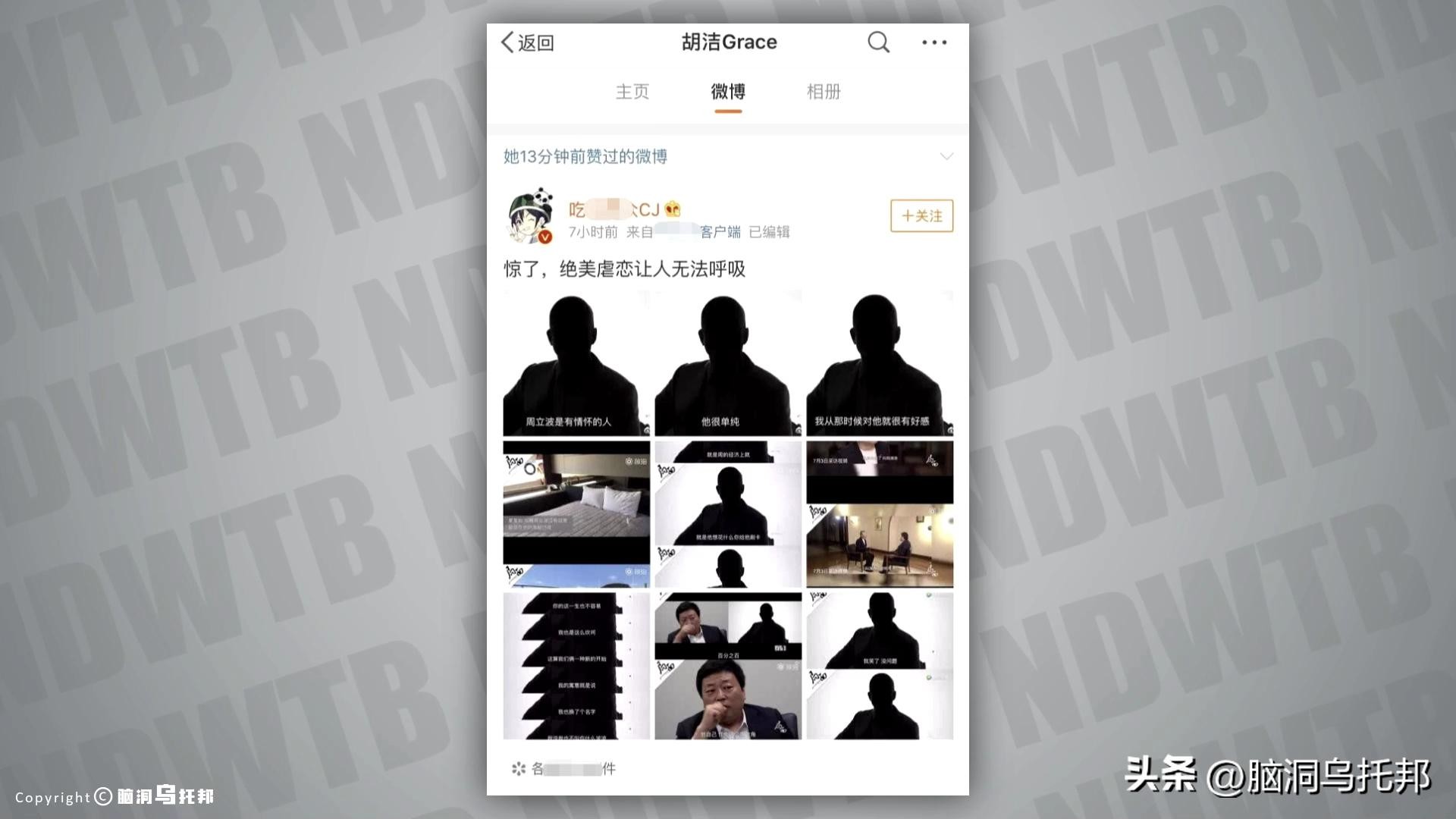 采访中,某某一直拒绝念胡洁的名字,他说胡洁配不上个「洁」字,他把胡洁称为「那个妇女」。