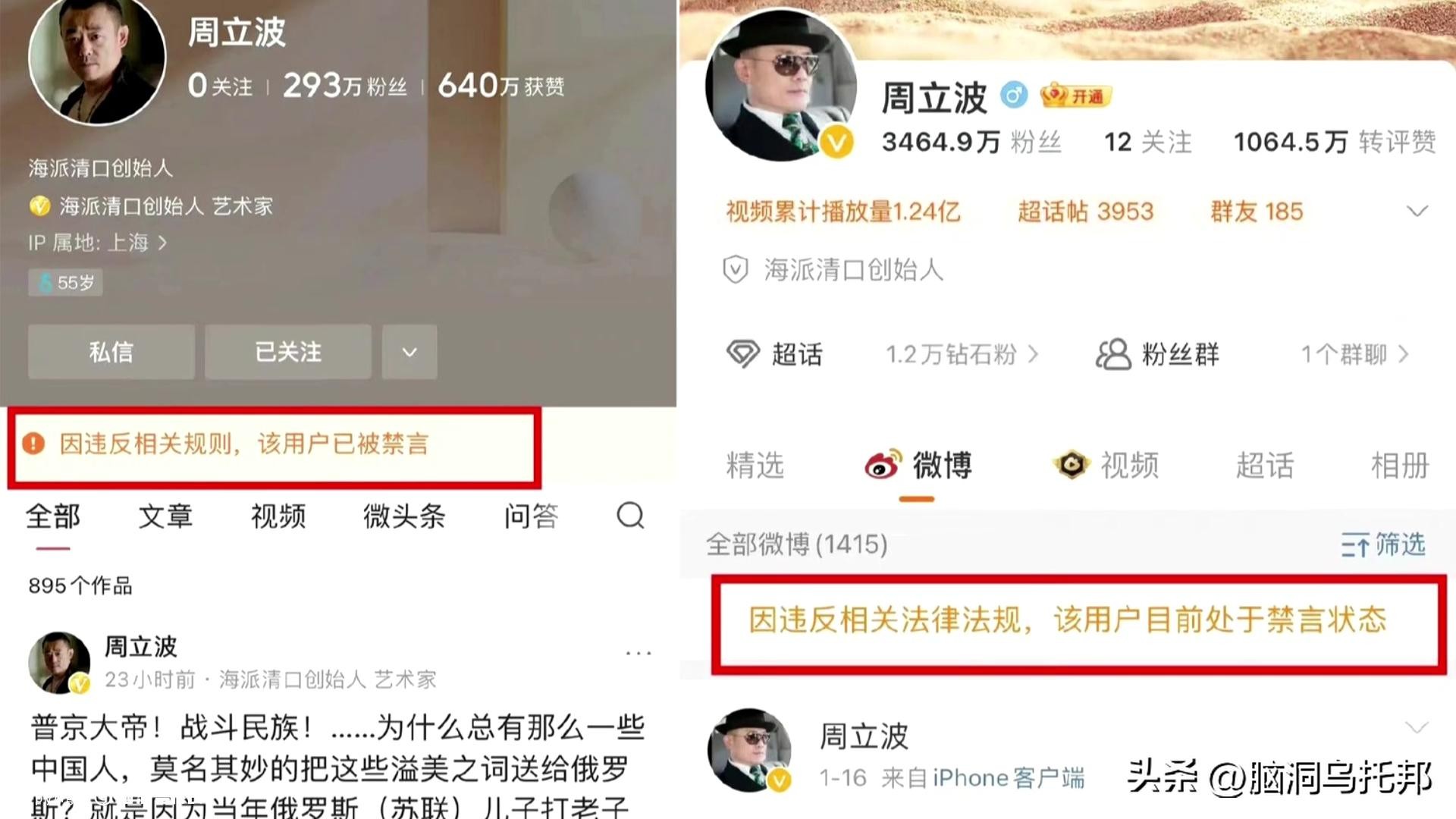 周立波同样定居了美国,常常在自媒体上发言,也常常因为在自媒体上发表过激言论被禁言。