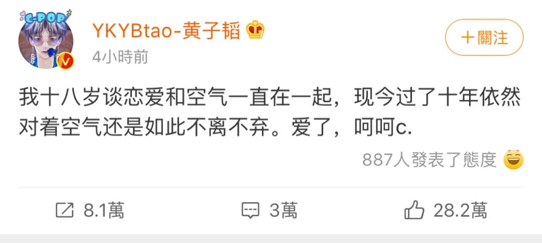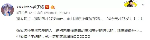 黄子韬才发微博回应“太想谈恋爱”一事