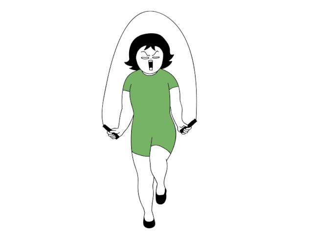 双脚像跑步的方式跳绳,并以一分钟跳120次为目标: