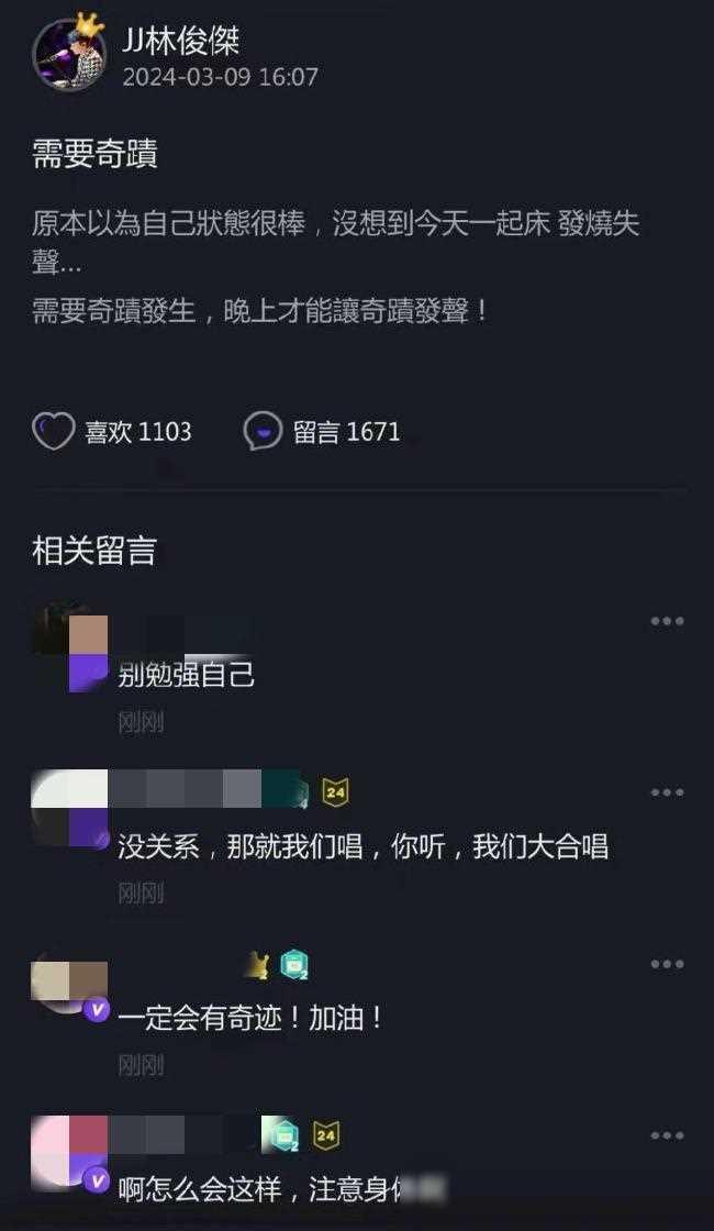 然而,面对外界的种种猜测和质疑,林俊杰方面却迟迟没有给出明确的回应。这不禁让粉丝们更加担忧,纷纷猜测是不是情况真的很严重。与此同时,网络上也开始流传各种关于林俊杰病情的猜测和谣言,让整个事件变得更加扑朔迷离。