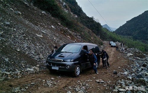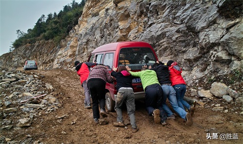 上山受阻,泥泞打滑,只能推到安全地驻车