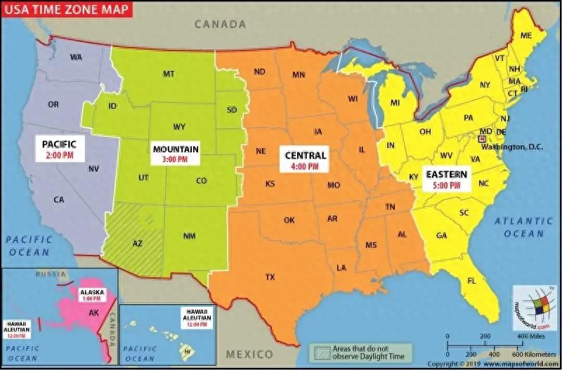 Mountain Time/山地时间(丹佛、凤凰城等)时差为-15小时,