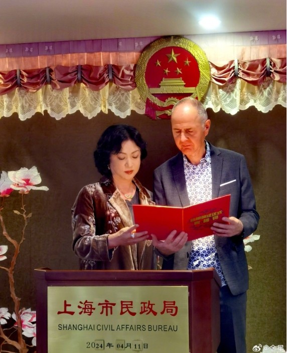 同时金星分享了多张在上海市民政局领证的照片,照片中金星 打扮得十分精致,身穿中式绣花外套,而汉斯则一袭西服搭配花衬衫。金星记台前完成签字 ,汉斯则依偎在爱人旁边等待。