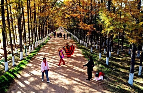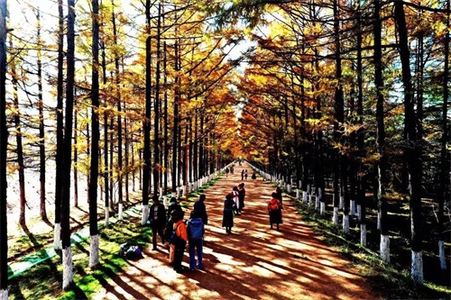而此时,落叶松林组成的“黄金大道”最吸睛,这条“黄金大道”全长580米,由2050株落叶松构成,它们经过几十年的生长,形成了一个天然的林场。