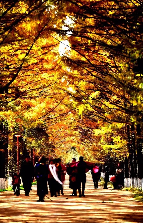 “黄金大道”可是秋日醉美的拍照打卡地,老少皆宜,慢步拍,奔跑拍,跳起来拍,组合拍,或是集体来个“背影杀”……都是“绝绝子”!