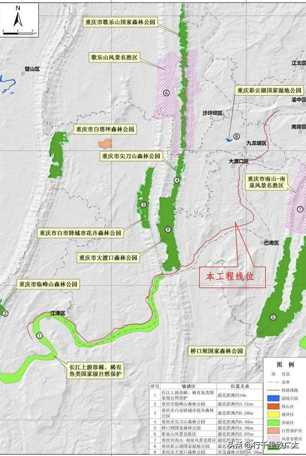 线路区间与长江上游珍稀特有鱼类国家级自然保护实验区伴行约 30公里;