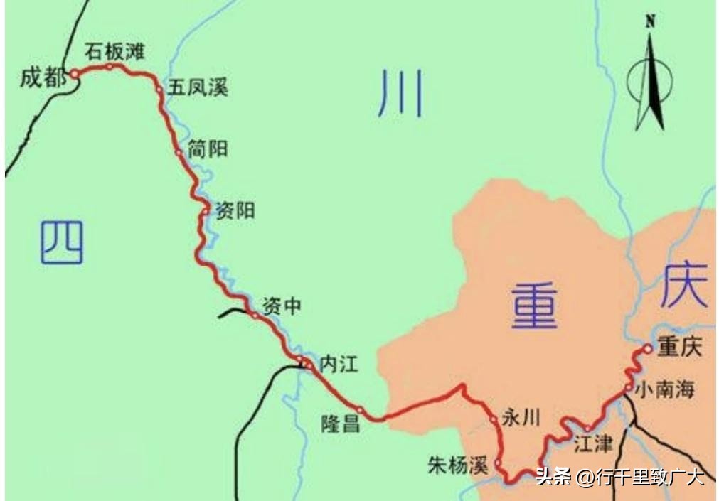 老成渝铁路是新中国成立后建成的第一条铁路,1950年6月开工建设,于两年后竣工,至今已逾七十载。线路由成都—陈家湾—简阳市—资阳市—资中县—内江市—隆昌市,后进入重庆永川,继续向南,在朱杨溪站与长江相遇,沿长江北岸折返向前至江津白沙站,终到重庆菜园坝站,全线504公里。