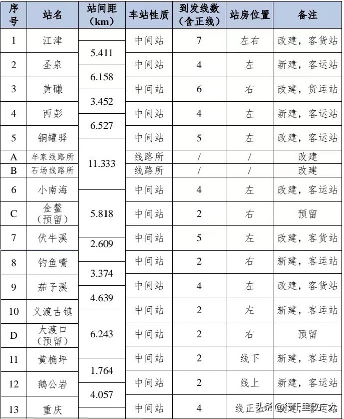 重庆南站为客货运站,此次改造不涉及,保留现状,不承担运营任务;