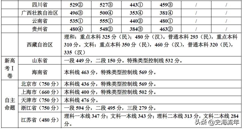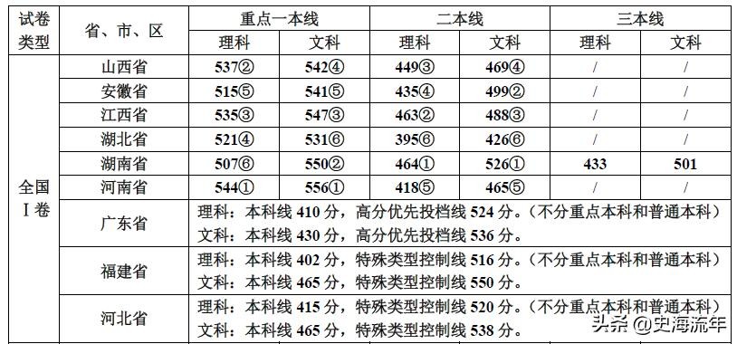 一、全国Ⅰ卷文科、理科一本线、二本线排行榜。