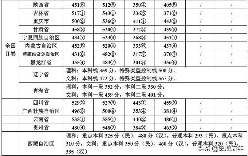 二、全国Ⅱ卷文科、理科一本线、二本线排行榜。