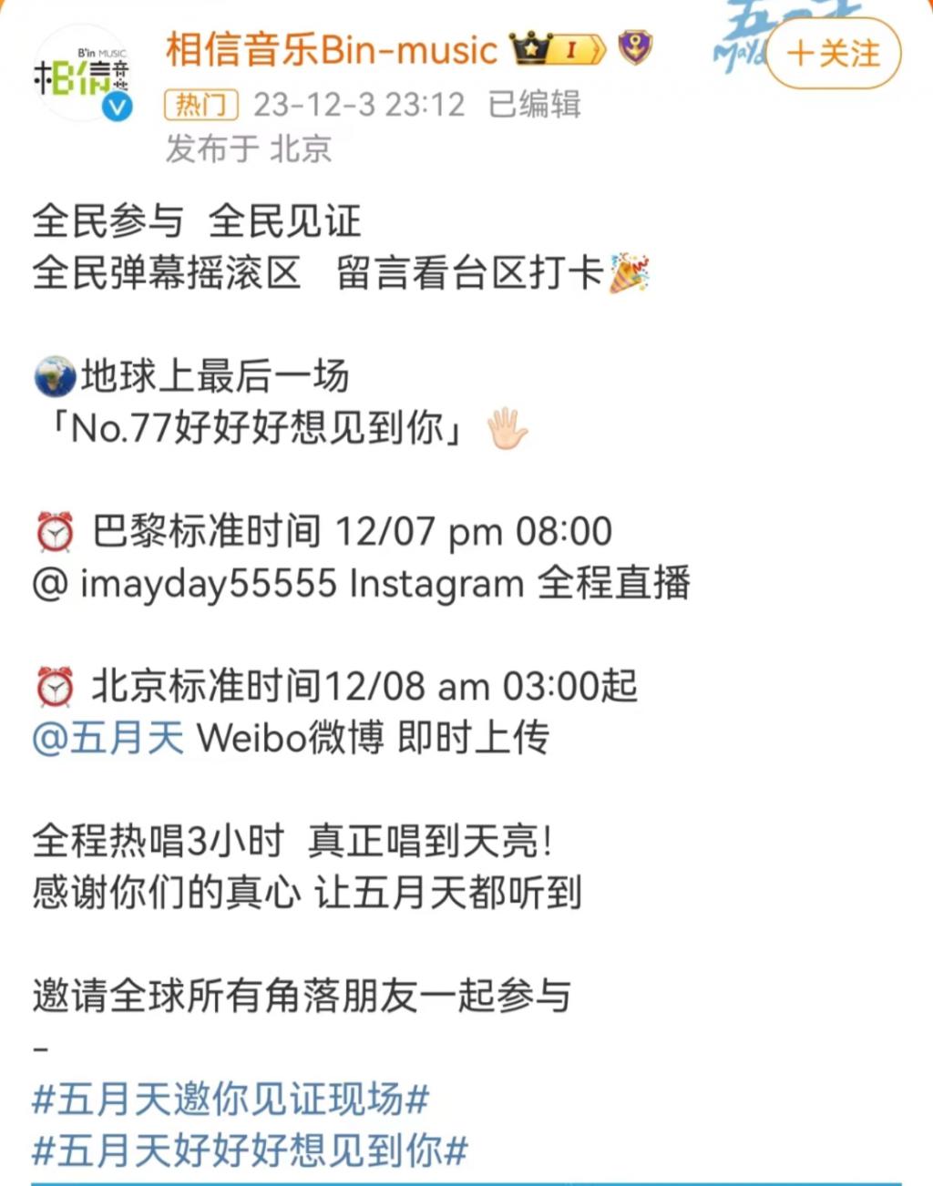 话题 # 相信音乐 五月天邀请你见证现场 #