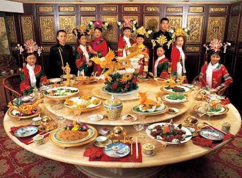 彼此相互见礼过后,大家都入席,这就要开席上菜了,就看见很多侍女丫鬟们,都打扮得喜洋洋加美洋洋的,往来上菜,都是美酒佳肴,珍馐美味,这时候如果是郭德纲说,那免不了又是那句“山中走兽云中燕,陆地牛羊海底鲜,猴头燕窝鲨鱼翅,熊掌干贝鹿尾尖”的形容词了。