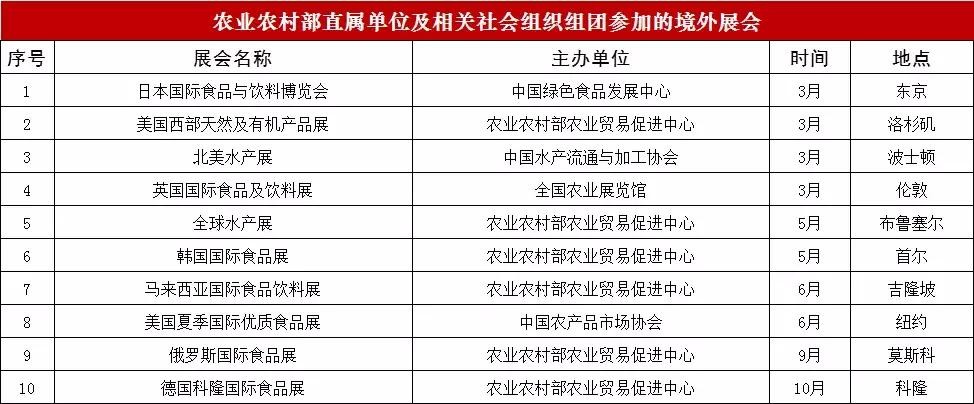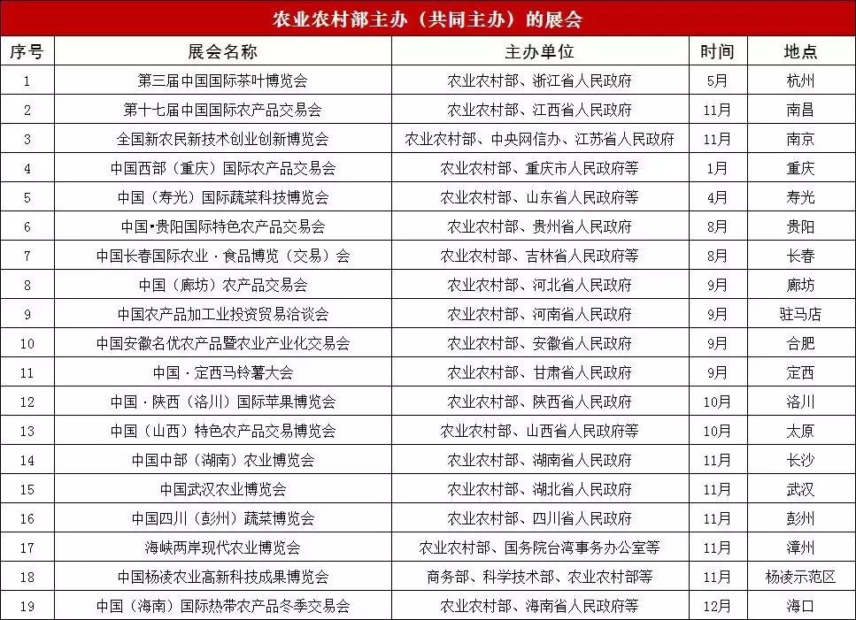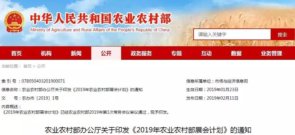 2019 年农业农村部展会计划公布,全年 39 场!(附具体时间表)
