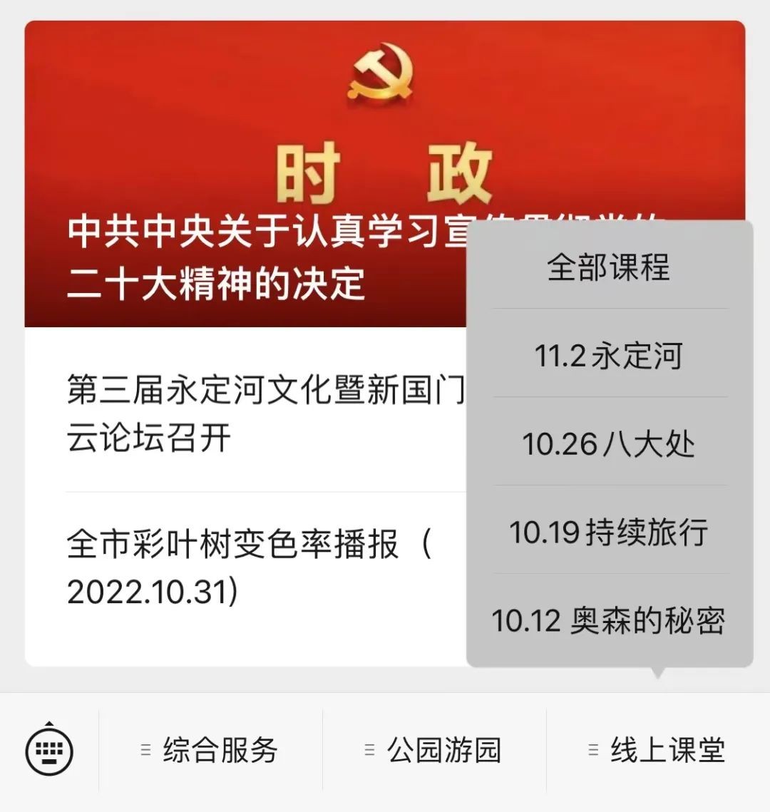 ★ 可通过手机或Pad在“首都园林绿化”微信公众号点击进入底部菜单栏,选择“线上课堂”,点击想要看的课程即可。