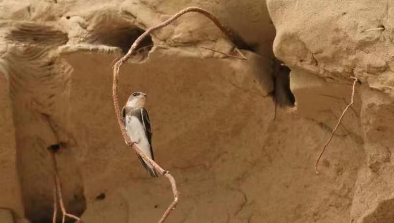 除了震旦鸦雀,别的鸟类也在永定河流域生儿育女,繁育后代。崖沙燕在水边高大的土坡上打洞筑巢,这些看起来是荒地的土坡对于它们至关重要。