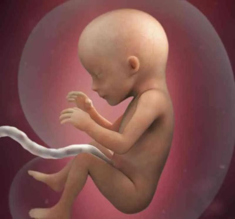 进入第11周,胚胎变成胎儿,而变成胎儿大概就是医学模型图的第1行的第2张图片。我们会发现孩子有头还有身体和四肢,也就是麻雀虽小,五脏俱全。