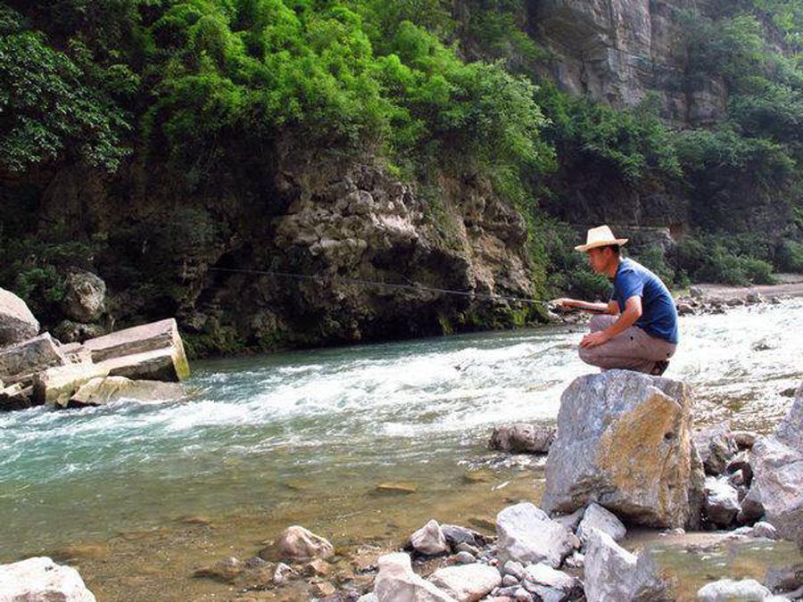 发现白条、马口及吸食青苔、小虫的猪嘴鱼(青鳙)较多,那么采用溪流竿挂蚯蚓、蝇蛆凭手感垂钓是最好方法。