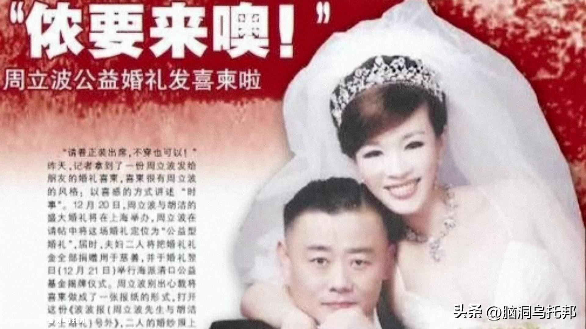 同年12月20日,周立波在上海高调迎娶胡洁,并给婚礼起了一个美名--公益婚礼,承诺会将收到的礼金悉数捐赠给上海慈善基金会海派清口公益基金。