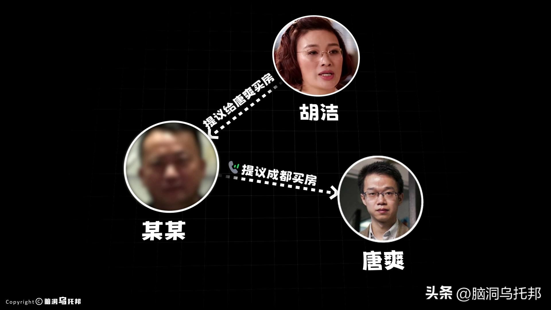 胡洁的确提议让某某给唐爽买房,某某就给唐爽去了电话,说我们正好在成都有个楼盘,我给你买一套房吧,也给你父母压压惊,但唐爽坚定的回绝了。