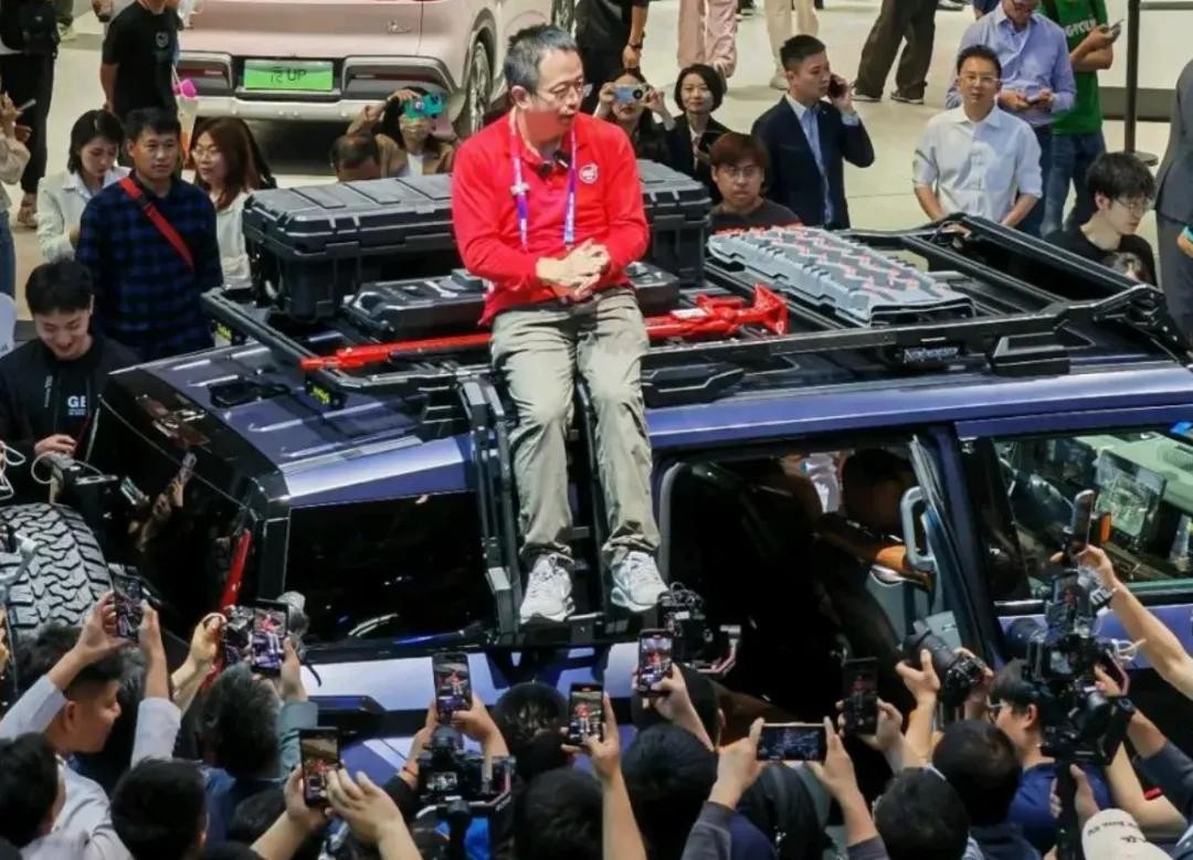2024年4月25日,在北京车展上,周鸿祎现身与各个车企互动,甚至还爬上了一辆车的车顶坐下来。吸引了众多媒体的围观拍摄。