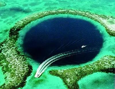 冰河时期是个干涸的大洞,冰川融化,海平面的升高让它变成了现在的样子。是灯塔礁的一部分,位于伯利兹城陆地大约100公里之遥,直径为0.4公里,洞深145米。形状为几乎完美的圆形