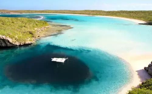 位于巴哈马长岛(Long Island)克拉伦斯市的一个海湾中,是目前世界第二深的蓝洞(202米深)。由于缺少水循环,海洋生物无法在蓝洞生活,但却具有很大的科学研究价值。目前科学家在蓝洞底部发现了许多远古化石和一些动物的残骸。