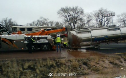 美国一卡车侧翻 18吨液体巧克力泄露成河