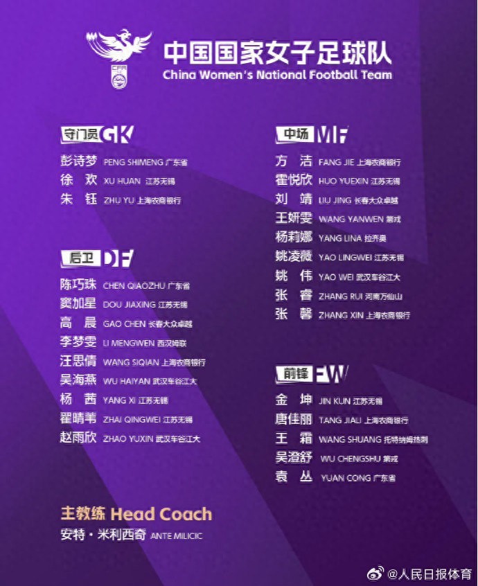 中国女足最新一期集训大名单出炉,26人大名单如下: