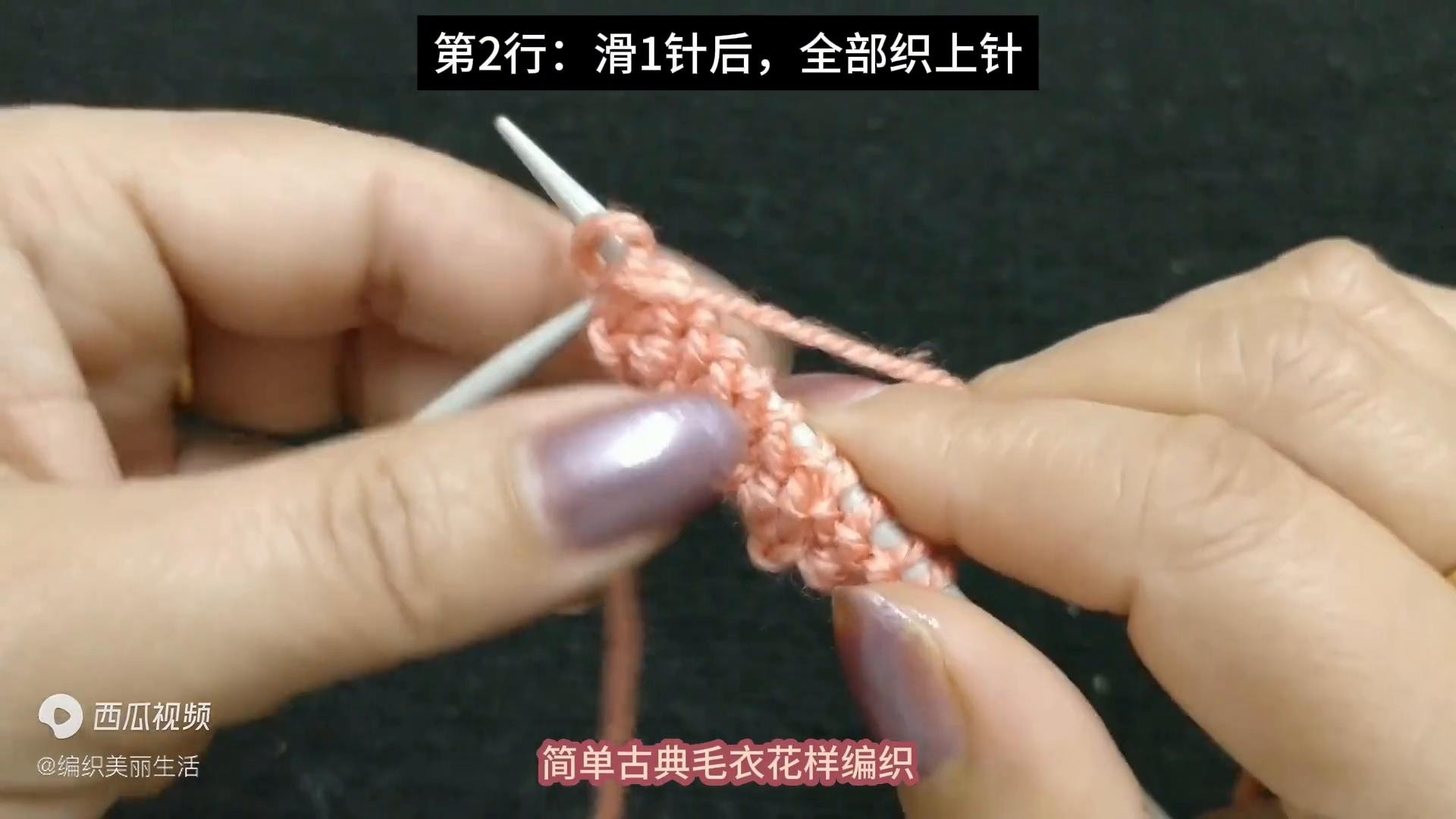 3. 第 2 行:滑 1 针后,全部织上针。