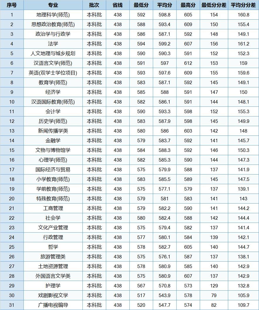 2024年湖南师范大学在湖南省各专业录取分数线一览表