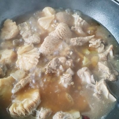 7、放入提前泡好的猴头菇,继续小火炖15分钟,放入盐调味