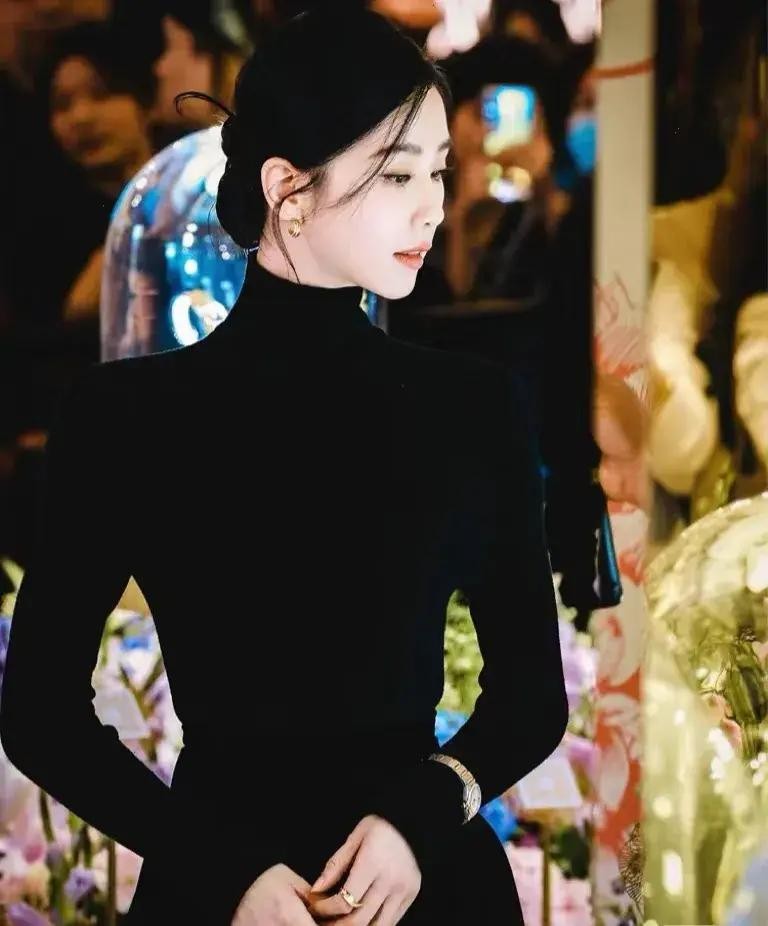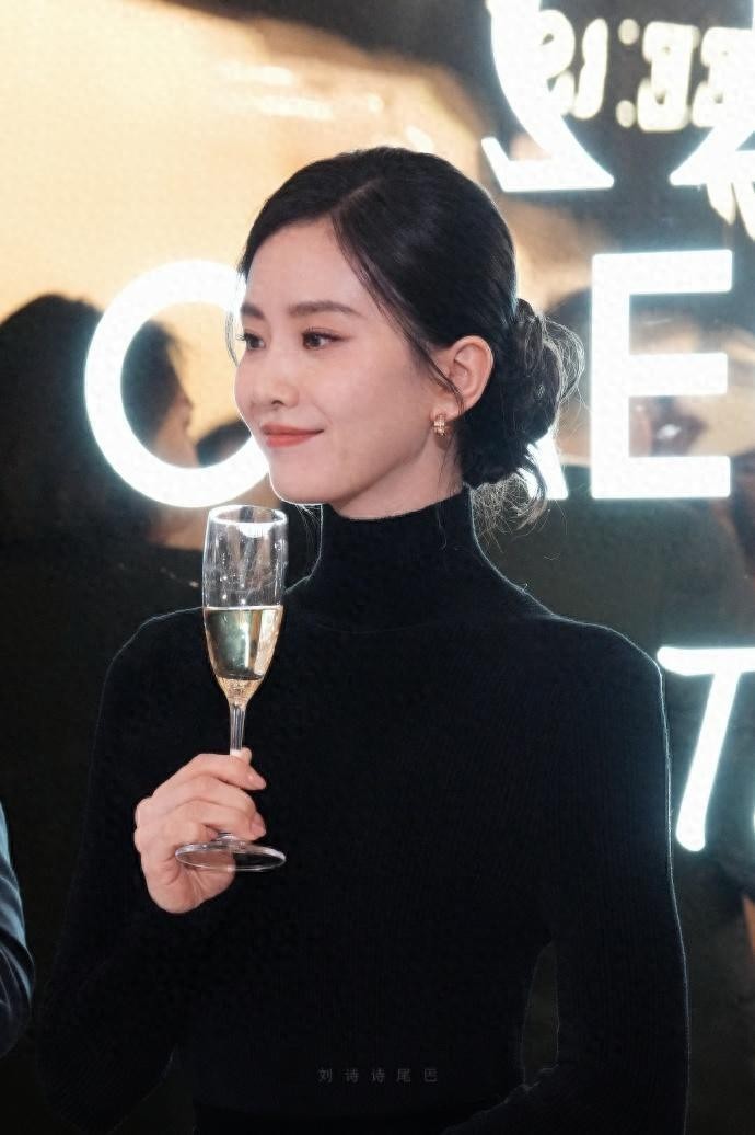 36岁刘诗诗气质太绝!黑色高领打底出席活动,宛如优雅黑天鹅