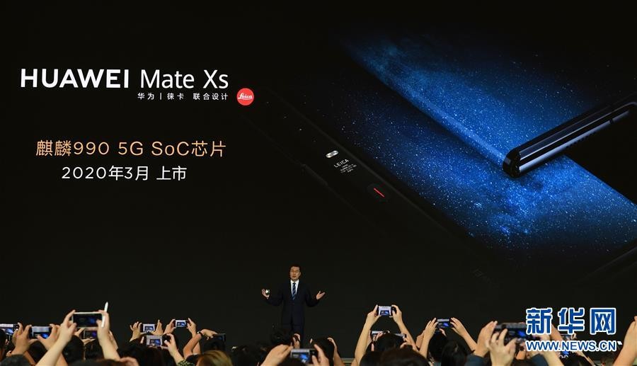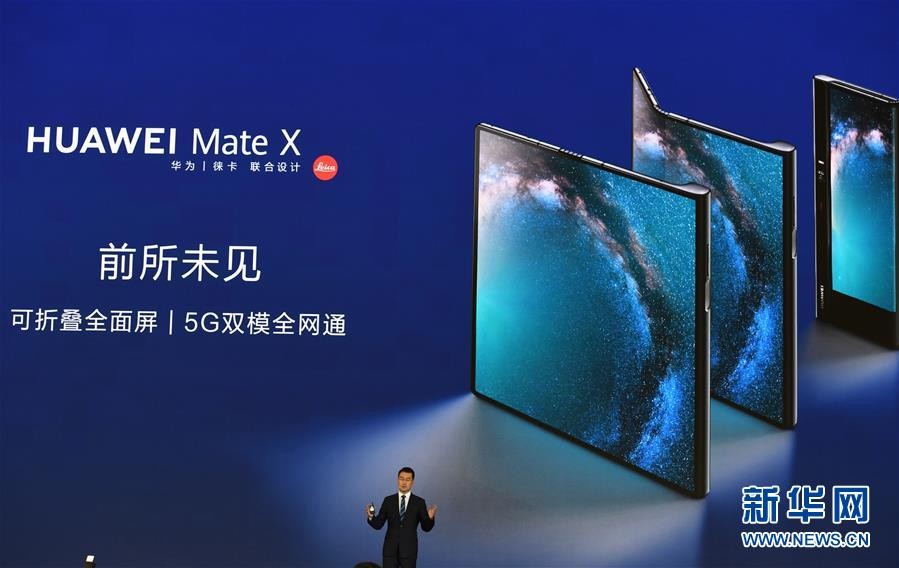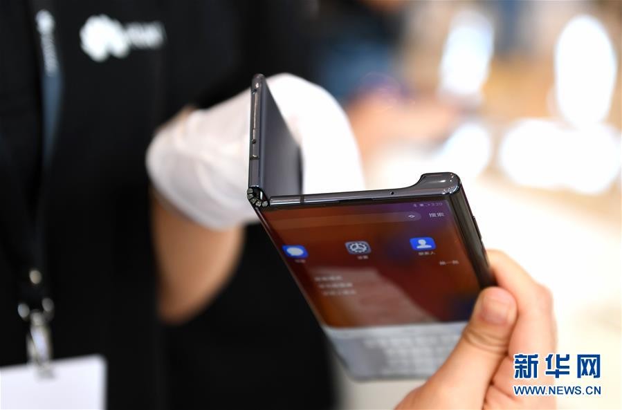 10月23日,工作人员在发布会上展示华为可折叠全面屏5G手机Mate X。 当日,记者在华为5G终端及全场景新品发布会上获悉,截至10月22日,华为2019年手机销量已突破2亿台,这一销售业绩比2018年提前64天。华为近期密集发布新款5G手机,加速5G终端市场布局。 新华社记者 毛思倩 摄