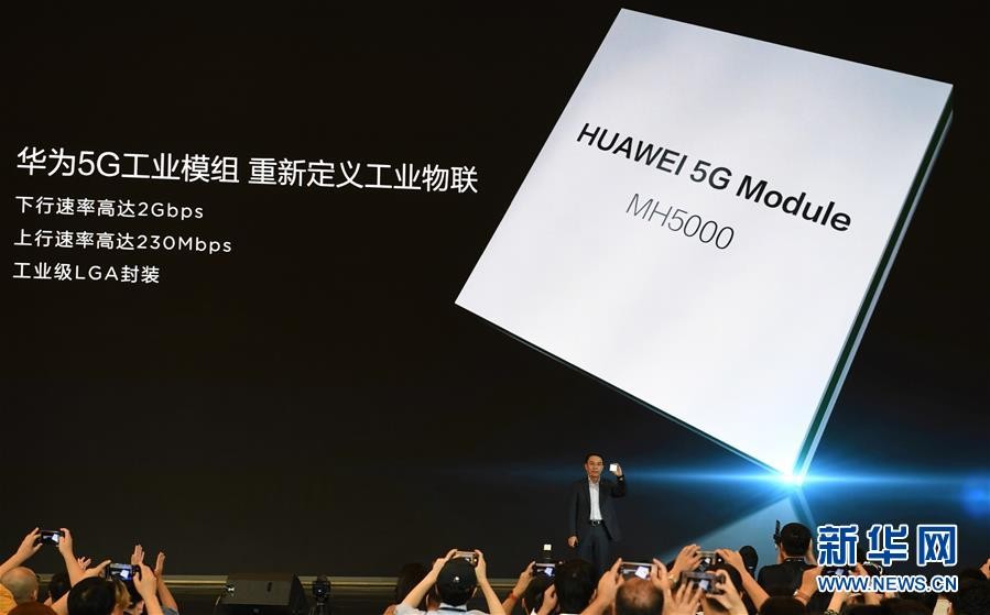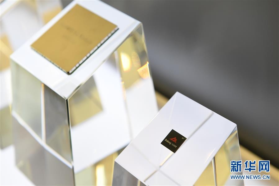 10月23日在发布会上拍摄的巴龙5000芯片以及搭载该芯片的5G工业模组。 当日,记者在华为5G终端及全场景新品发布会上获悉,截至10月22日,华为2019年手机销量已突破2亿台,这一销售业绩比2018年提前64天。华为近期密集发布新款5G手机,加速5G终端市场布局。 新华社记者 毛思倩 摄