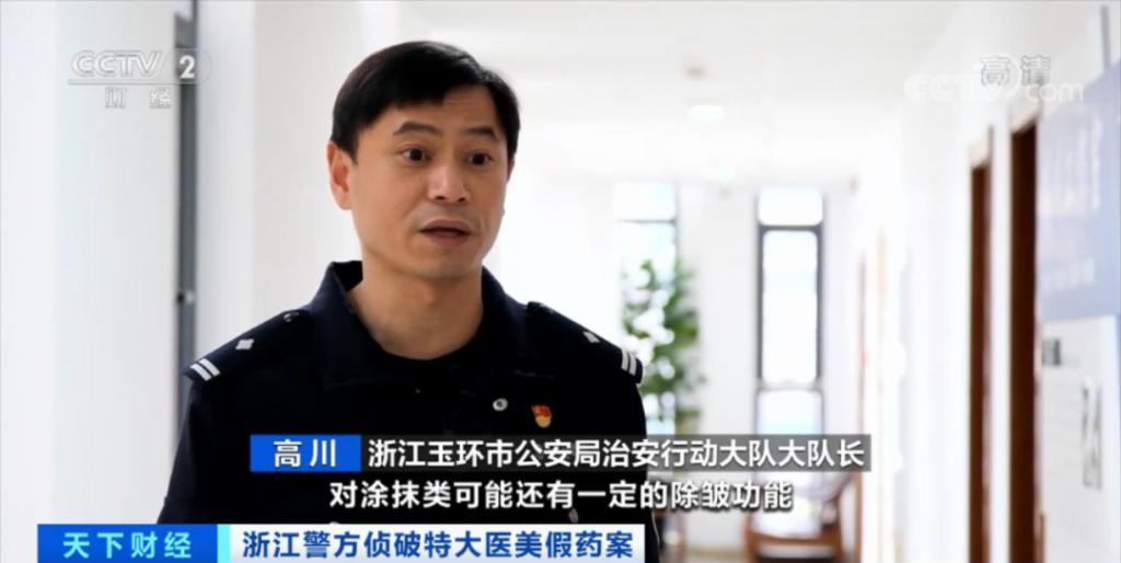 浙江玉环市公安局治安行动大队大队长 高川:因为本身化妆品只适合涂抹,对涂抹类可能还有一定的除皱功能,但是注射的话就会出现一系列的反应,比如说皮肤出现部分红肿,或者皮肤的肌肉会有一定的影响。