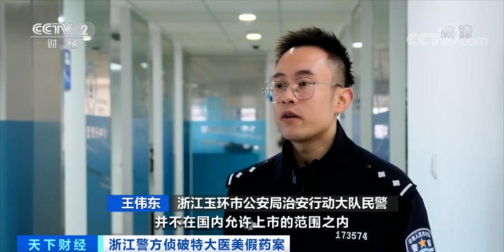 浙江玉环市公安局治安行动大队民警 王伟东:该肉毒素的品牌并不在国内允许上市的范围之内,同时对于该肉毒素的生产批号进行了查询,发现同时间内,该品牌的肉毒素在韩国当地因为生产问题已被当地的行政部门停业整顿。