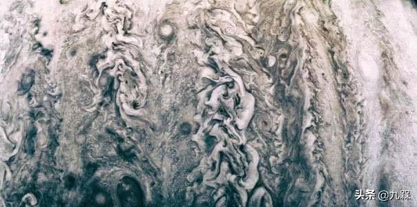 木星表面看似花纹很多,很漂亮。醒目的蓝色漩涡以及华丽的图案扭曲变幻。其实这些花纹都是源于它自转速度太快。促使气流与赤道平行,产生了巨大的离心力。两级相对扁平,赤道隆起并出现与赤道平行的云带。氨化物有各种各样的颜色。但大部分都是红棕色。也导致木星如此漂亮。但是这漂亮的背后也是非常危险。可远观而不可亵玩。当你穿过云层之后,你会发现四周越来越暗。越来越热。他的核心温度比太阳表面温度还高,而且压力大的超乎想象。不管在内部还是外部。木星世界都狂躁不安。大红斑斑是目前已知的木星上最大的风暴气旋。而且已经存在了400年了。