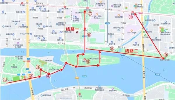 针对广州塔、动物园两大热门景点,广州地铁提供了其他路线建议。广州塔可以在江对面的二沙岛打卡,“小蛮腰”视觉效果更纤细,还可以避免在广州塔站人挤人排队半小时以上。
