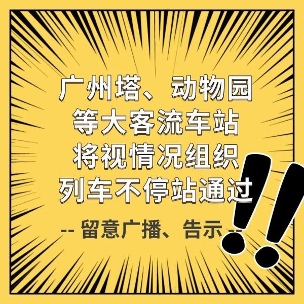 其中,广州地铁特别“点名”广州塔站、动物园站,当广州塔景区、动物园景区客流较大时,地铁车站将采取措施,减缓乘客前往景区的速度。