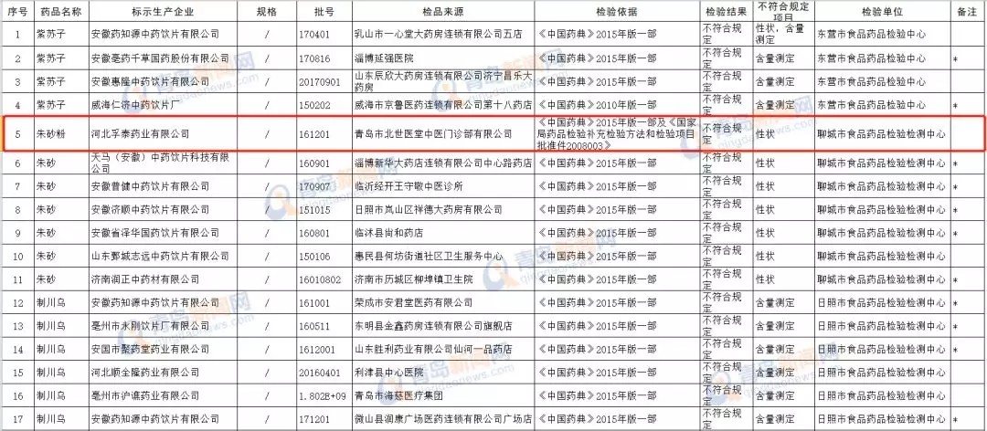 在7月22日山东省食品药品监督管理局曝光的今年第3期药品质量抽检通告中,青岛市北世医堂中医门诊部有限公司因销售或使用河北孚泰药业生产的朱砂粉性状不符合规定,被山东省药监局责令整改。