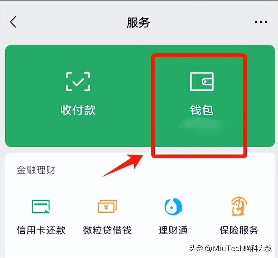 2、在服务页面中,点击“钱包”选项,在钱包页面中,点击“帮助中心”选项。