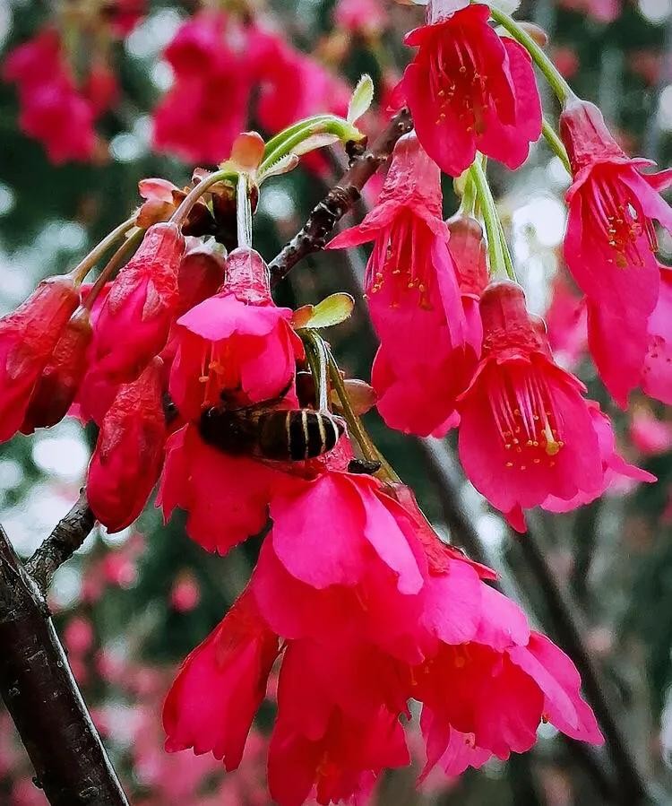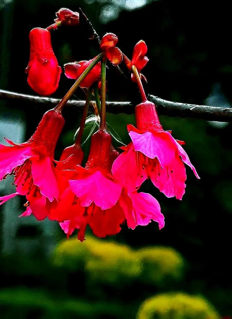 福建山樱花,学名:钟花樱桃,别称:山樱花、绯樱。蔷薇科樱属乔木或灌木,高3-8米,树皮黑褐色。