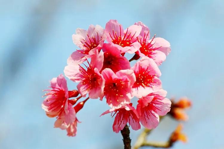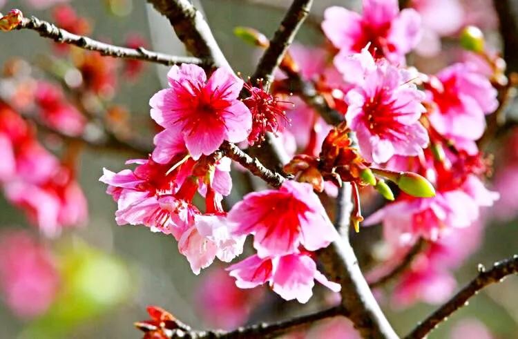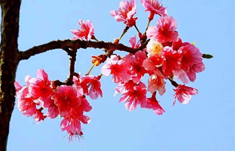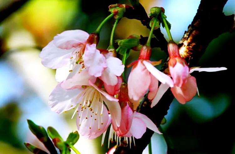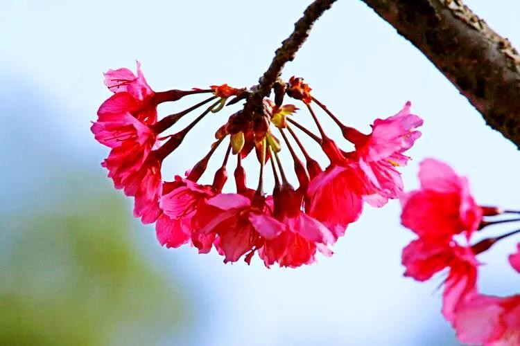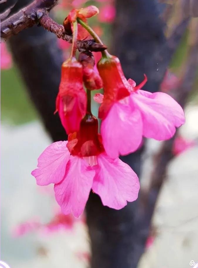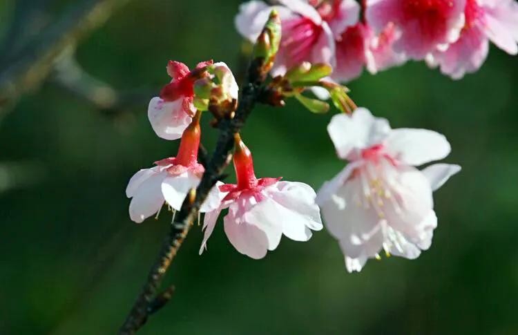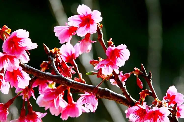 福建山樱花,早春先花后叶,色彩鲜艳亮丽,枝叶繁茂旺盛,柔软的花姿别具风韵。花期2-3月,果期4-5月。