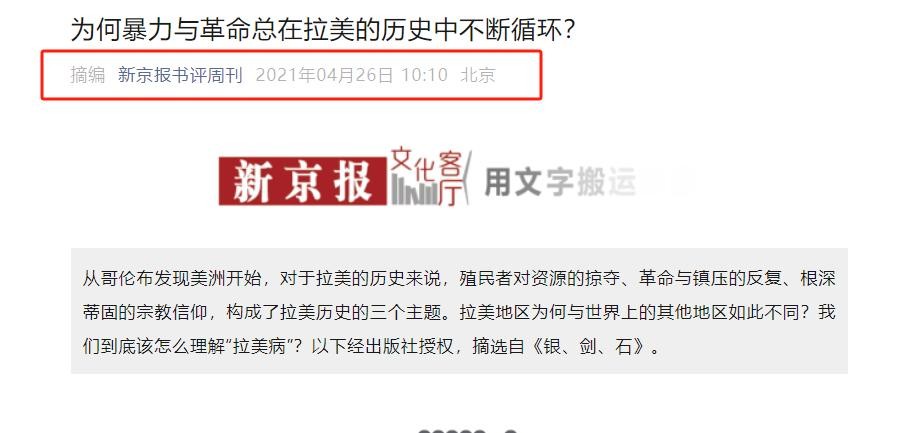 为何暴力与革命总在拉美的历史中不断循环? 摘编 新京报书评周刊 2021年04月26日 10:10 北京