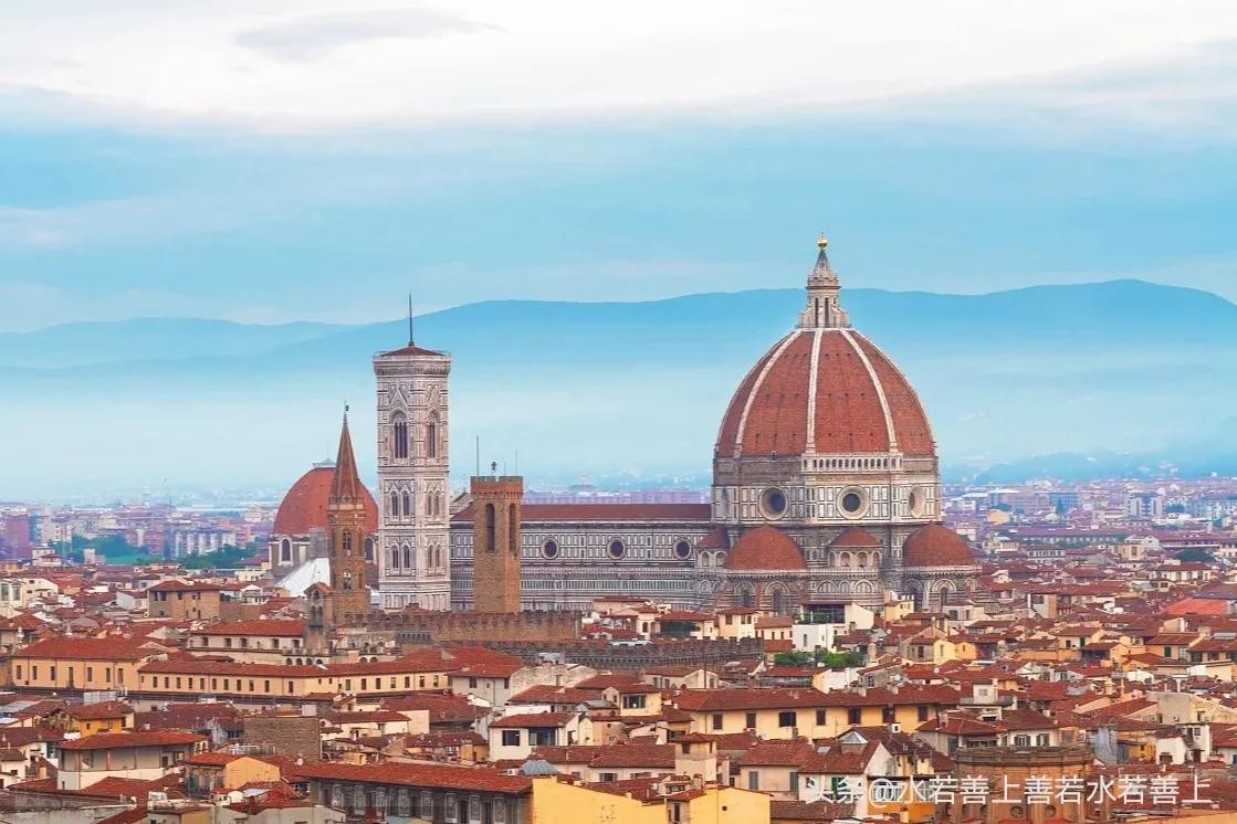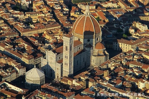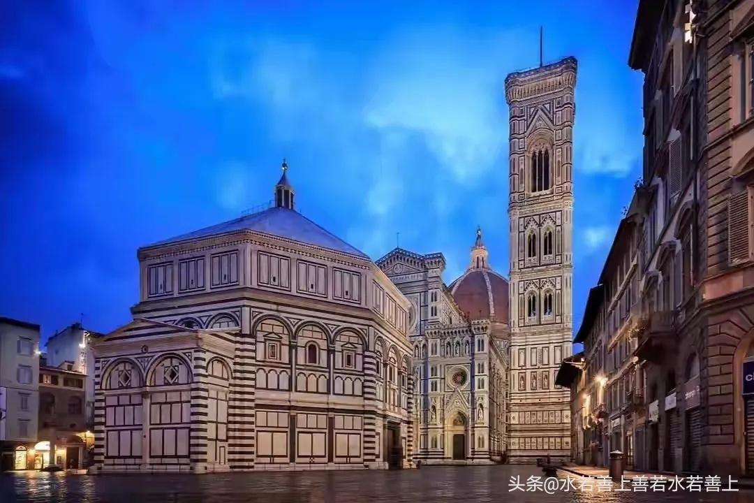 意大利佛罗伦萨大教堂修建于1295~1496年,是文艺复兴时期第一座伟大建筑。教堂造型具有独创性,大圆顶是世界上第一座大圆顶,把文艺复兴时期的屋顶形式和哥特式建筑风格完美地结合起来,有明显的过渡特征。教堂用绿色、粉红、白色的大理石按几何图案装饰起来,将文艺复兴时代所推崇的古典、自由、优雅诠释得淋漓尽致。教堂所在区域被列入《世界遗产名录》。
