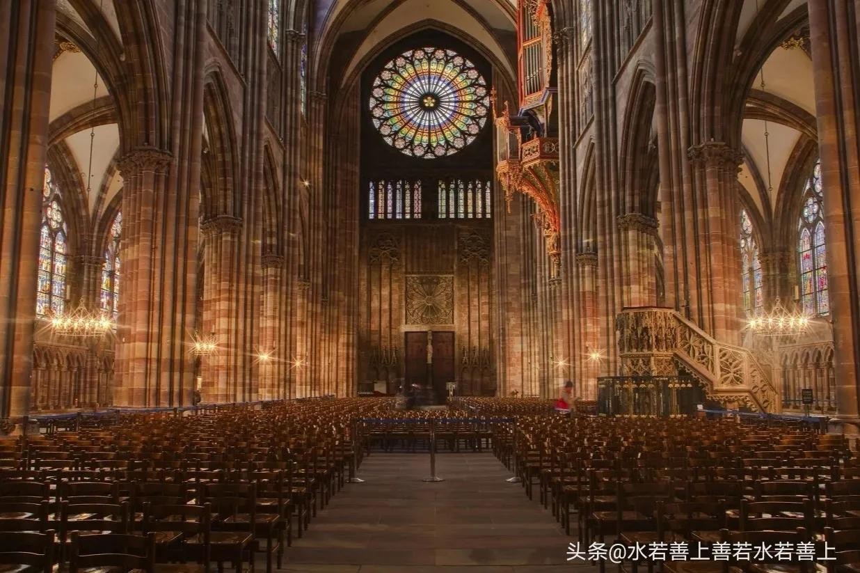 法国斯特拉斯堡大教堂始建于1176年,落成于1439年,是中世纪最重要的历史建筑之一,也是欧洲著名的哥特式教堂。大教堂精美的浮雕、圆形玫瑰窗和彩绘玻璃都是值得仰头细观的艺术品。登上塔顶,斯特拉斯堡秀丽的景致及壮丽的山脉和森林尽收眼底,一览无余。教堂被列入《世界遗产名录》。