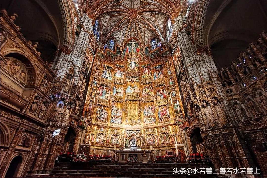 西班牙托莱多大教堂建于1227~1493年,内部装饰完成于18世纪,是西班牙最大的教堂之一。大教堂主体建筑风格为哥特式,内部装饰具有穆德哈尔等艺术特点,是一座集多种建筑艺术风格的庞大建筑群。大教堂的唱诗班被认为是基督教界最为壮观的,它的祭坛被誉为“世界第八大奇迹”。大教堂悠久的历史、伟大的建筑以及巧夺天工的雕刻,让它享有崇高的声誉,教堂被列入《世界遗产名录》。